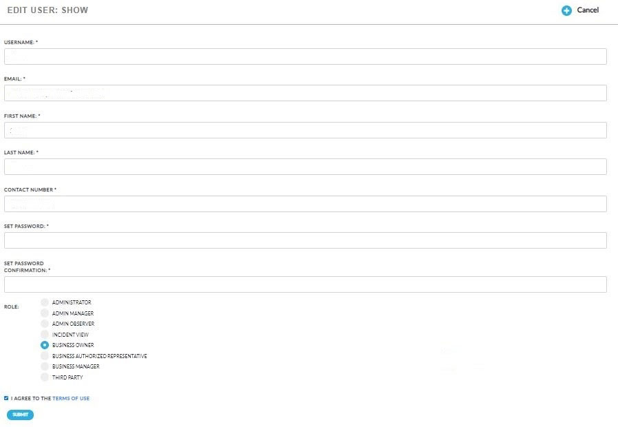 Set a new password by entering the new password in Set Password and Set Password Confirmation. Click Submit, and the new password will be set.