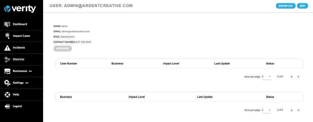 The manager needs to set their new password and the user agreement. Once completed, click Submit. The Verity Dashboard will then display.